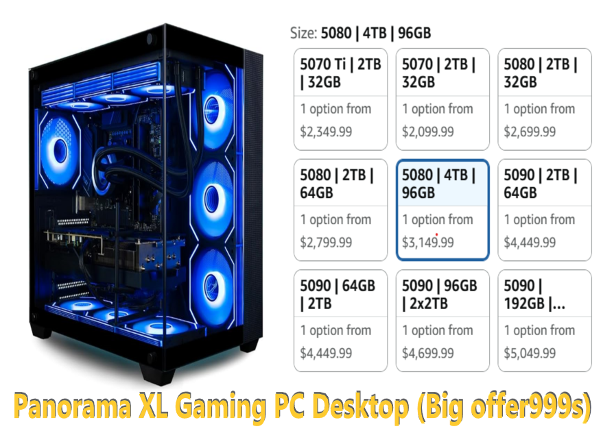 Panorama XL Gaming PC Desktop (Big offer999s) (NVD GeForce RTX 5080, Intel 24-Core i9-14900KF Processor, 96GB DDR5 RAM, 4TB Gen4 NVMe SSD, WiFi 6E, HDMI, Windows 11 Pro) Best 2025 Prebuilt Tower RGB Gamer Computer